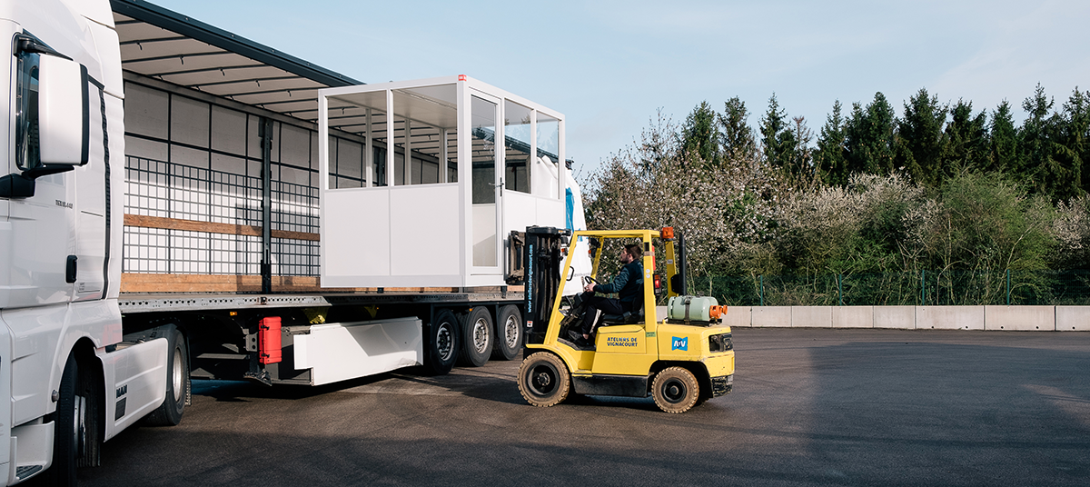 Livraison : Cabine livrée montée