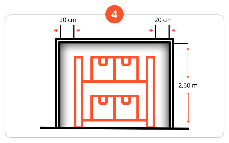 Livraison à l'abri par une entrée d'une hauteur minimale de 2,60 m et 200 mm de part et d'autre de l'élément cabine.